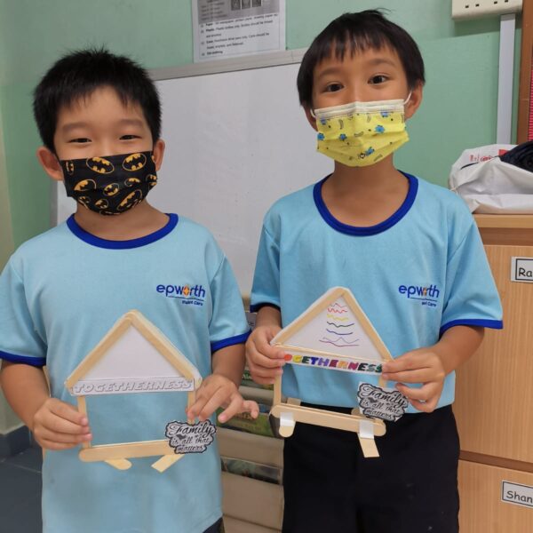 Next, as part of the Character Development Programme, students were educated on the term ‘togetherness’. They learnt about the significance of maintaining good relationships with our closed ones – an important element of the festival. In reinforcing this value, they made photo frames out of ice-cream sticks in the shape of a house. The students invested a lot of effort to create a lovely photo frame home.